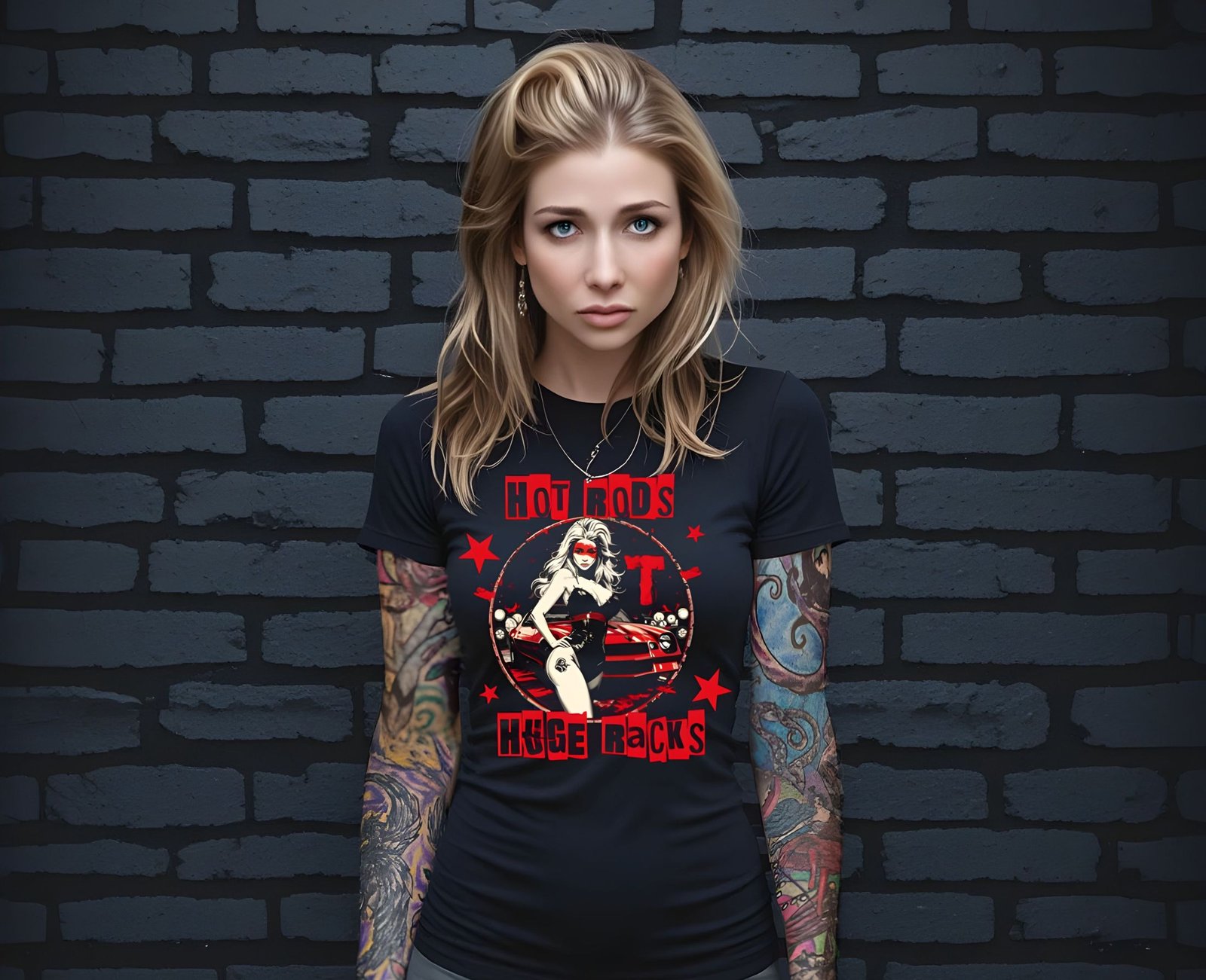 Burn rubber and turn heads with our “Hot Rods Huge Racks” tee…a wild fusion of muscle car culture and classic pin-up energy. This shirt is all about fast rides and fierce curves, celebrating the raw power of roaring engines and bombshell beauties. Made from premium 100% cotton or blended, it’s built for car lovers who like their rides loud and their style even louder. Whether you’re wrenching in the garage or cruising to the next car show, this tee brings the perfect mix of horsepower and attitude.