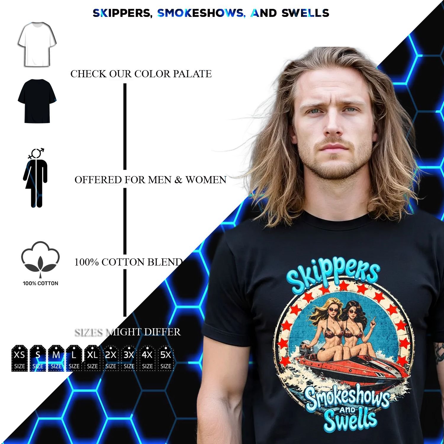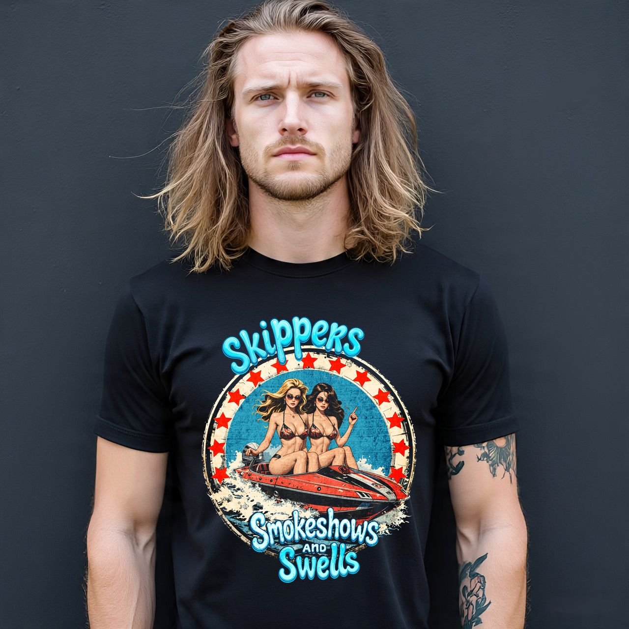 Our Skippers, Smokeshows, and Swells tee is the ultimate salute to life on the water where the sun’s hot, the drinks are cold, and the company is even hotter. Crafted from ultra-soft, high-quality cotton or blended, this vintage-inspired design captures the spirit of endless summer with bold, playful artwork featuring sleek boats, bikini-clad bombshells, and the kind of waves that make every ride unforgettable. Faded, distressed, and dripping with retro charm, it’s a nod to boat drinks, beach days, and the undeniable allure of smokeshows soaking up the sun.