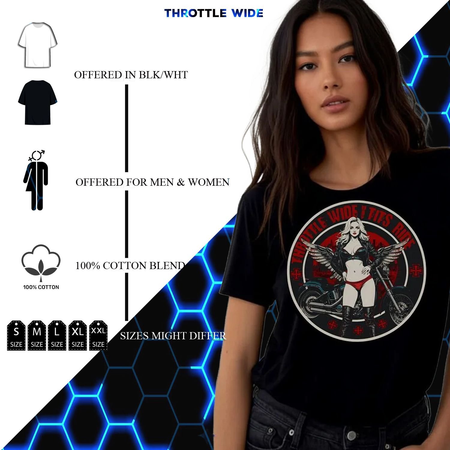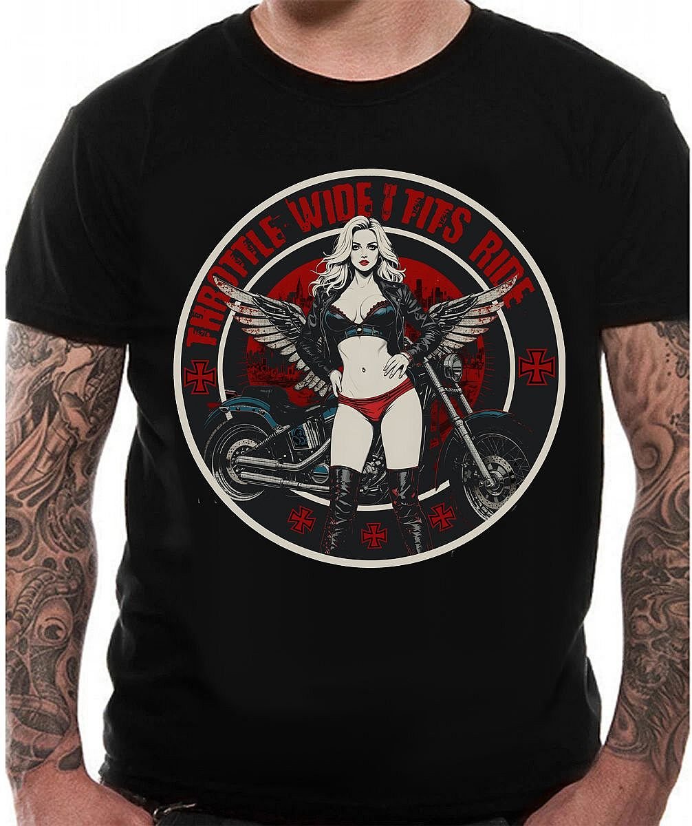Fuel up and hit the open road in our “Throttle Wide” tee…a motorcycle-inspired design made for anyone who lives life at full throttle. This 100% cotton or blended shirt blends classic biker grit with a modern edge, perfect for riders who value power, freedom, and style. Whether you’re chasing sunsets down the highway or posted up at your favorite dive, this tee delivers a bold statement without saying a word. Ride fast, look sharp, and let your shirt do the talking.